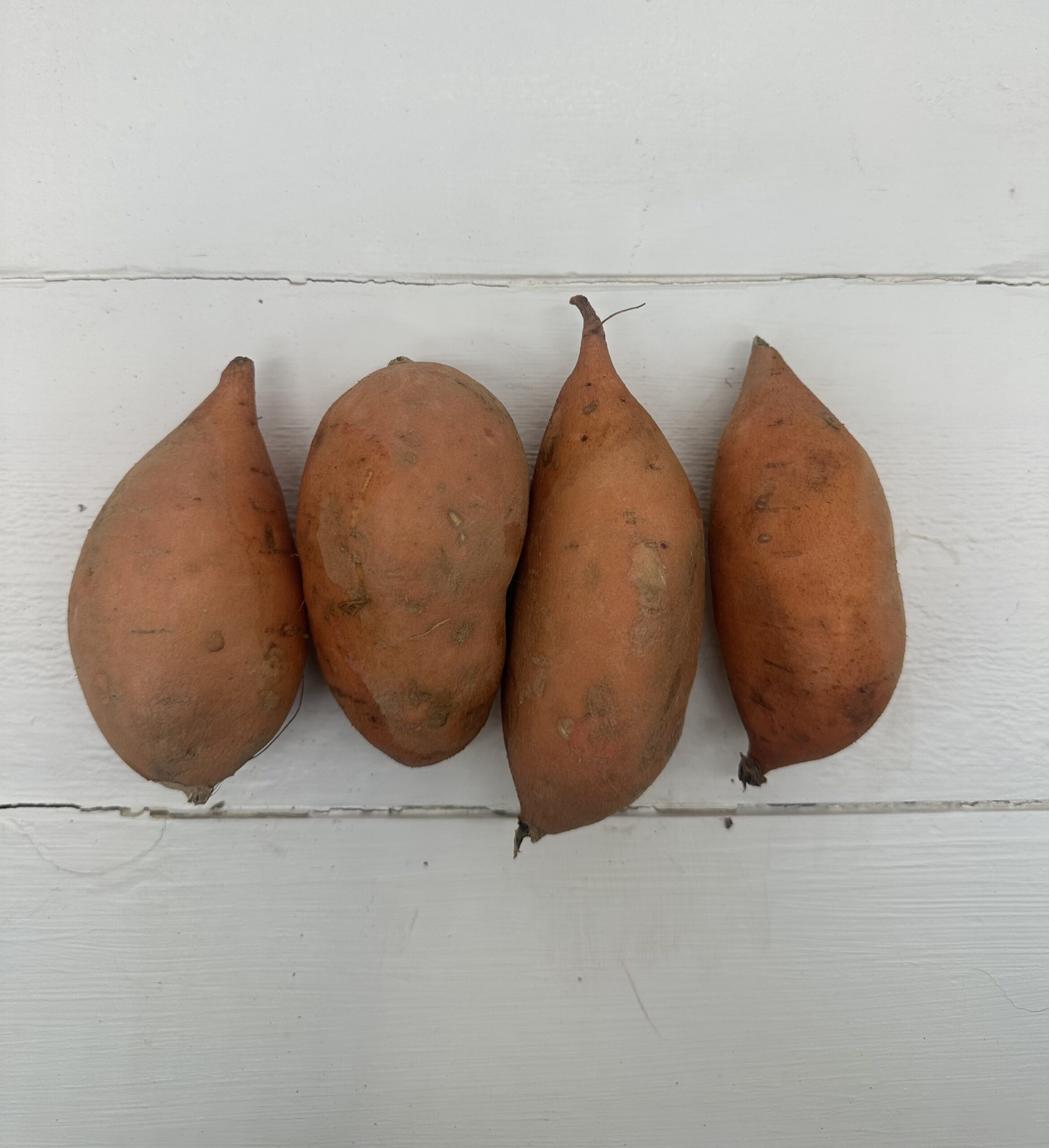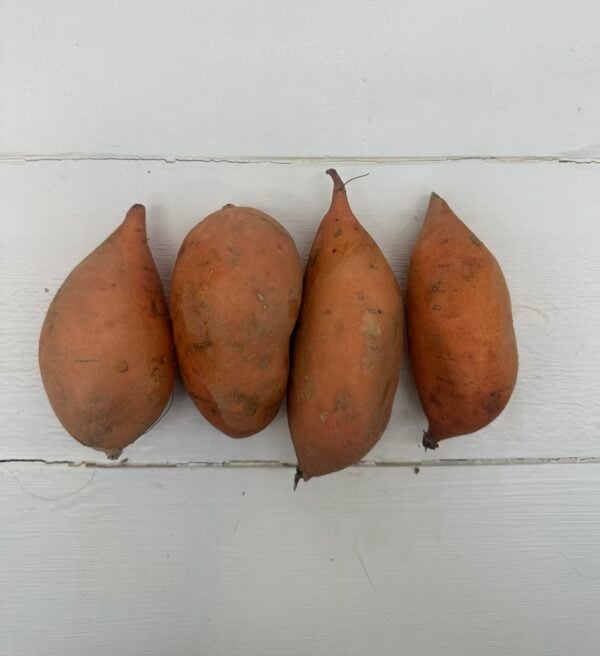 A fingerling-sized variation on the classic sweet potato, with the same sweet orange flesh. The only difference is that this variety has a skin that’s orange instead of red.